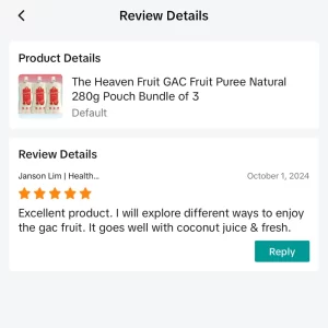Tik Tok customer (Review for GAC Fruit Puree)